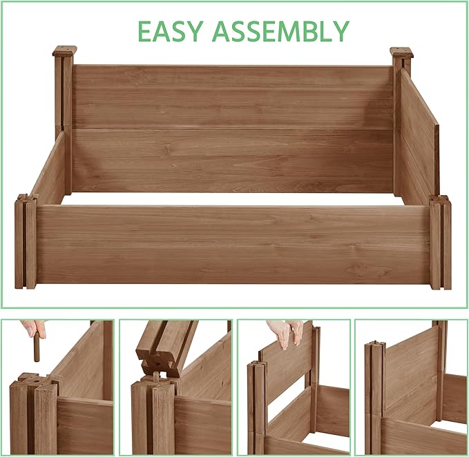 - SINGLE-PIECE SIDE PLATE -- Comparing to other planting beds that have several small pieces of wooden plates at the side, our planting raised bed has a piece of complete side plate at each side of the garden bed. It is fixed firmly without leakage of soil. The whole structure is very stable, and the installation is very easy