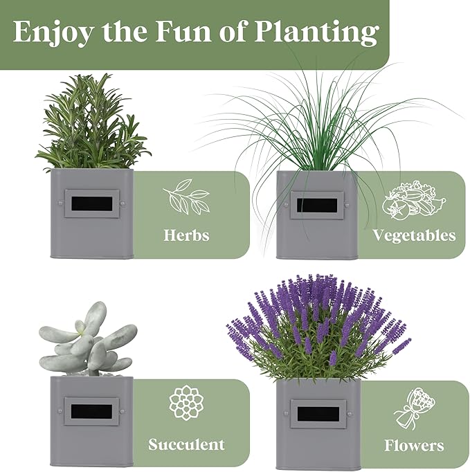 - 【Indoor Herb Garden】Experience the joy of gardening with our specialized indoor herb planter. This set includes a planter with a tray but does not come with plants and seeds. Designed specifically for herb cultivation, these planters can be used both indoors and outdoors. Crafted from durable metal with a sleek, glossy white finish, they blend functionality with a farmhouse style to enhance your living space.