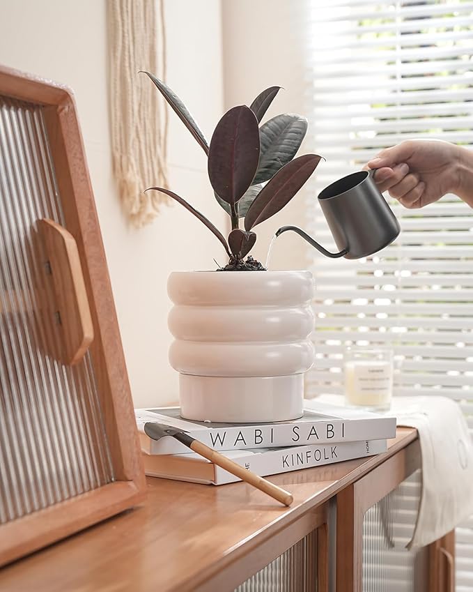 - 【Unique design】The creative Michelin tire design resembles the stacked shape of a donut, creating different spatial levels and giving the space a rich sensory experience. Using high-quality clay, the pot is more durable.Smooth surface for better cleaning.