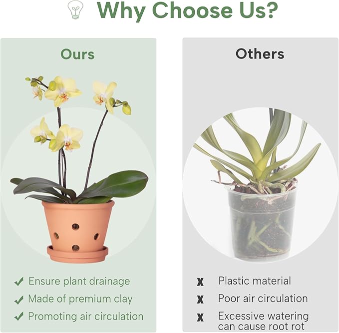 - Stunning Versatility: Whether you are potting a delicate Phalaenopsis or a robust Cattleya, these flower pots provide the perfect environment for your orchids to thrive. The terra cotta pots are suitable for a variety of plant types, including Orchids (Phalaenopsis, Dendrobium, Cattleya, etc), African Violets, Succulents, Monstera, Peace Lily, Snake Plants, Jade Plants, Herbs, Cacti and more