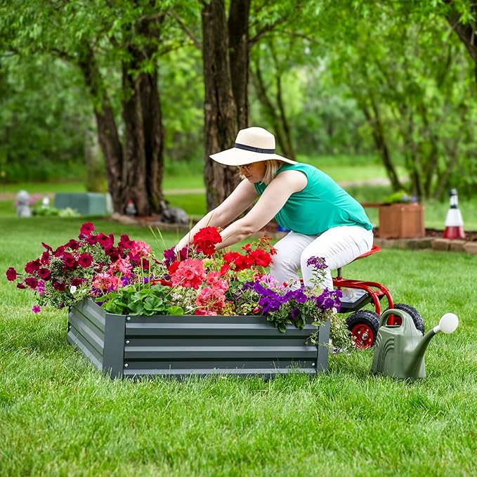 Sunnydaze Galvanized Raised Garden Bed - Metal Raised Bed for Gardening - Outdoor Planter Box for Flowers, Plants, and Vegetables - Gray - 48" W x 36" D x 12" H Rectangle