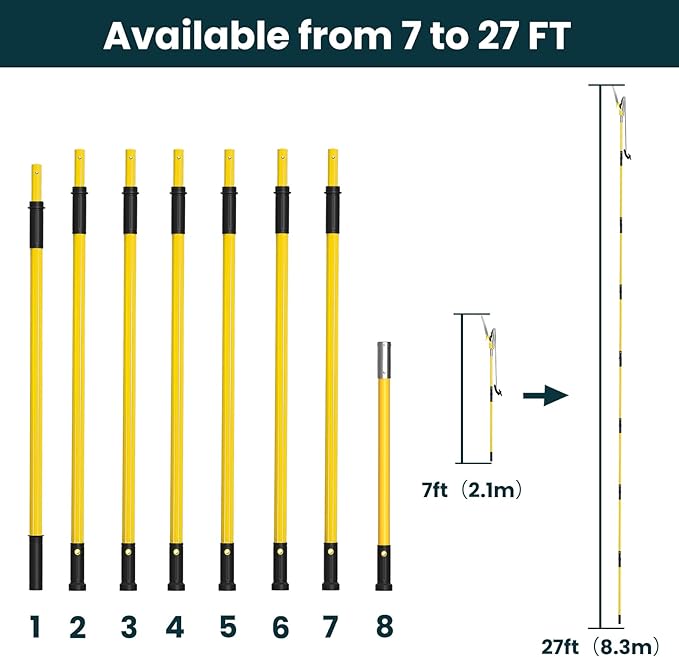 - 【Multifunctional Pruning Tool】With our brand new pole saw, pruning has never been easier! Different heights can be selected by splicing 8 pole saws, from 7.3 feet to 27 feet (2.24 m to 8.24 m), avoiding the danger of climbing altogether. Designed for pruning high branches, it can also be used as a handheld saw to trim low bushes and logs, instantly giving you a neat and perfect yard.