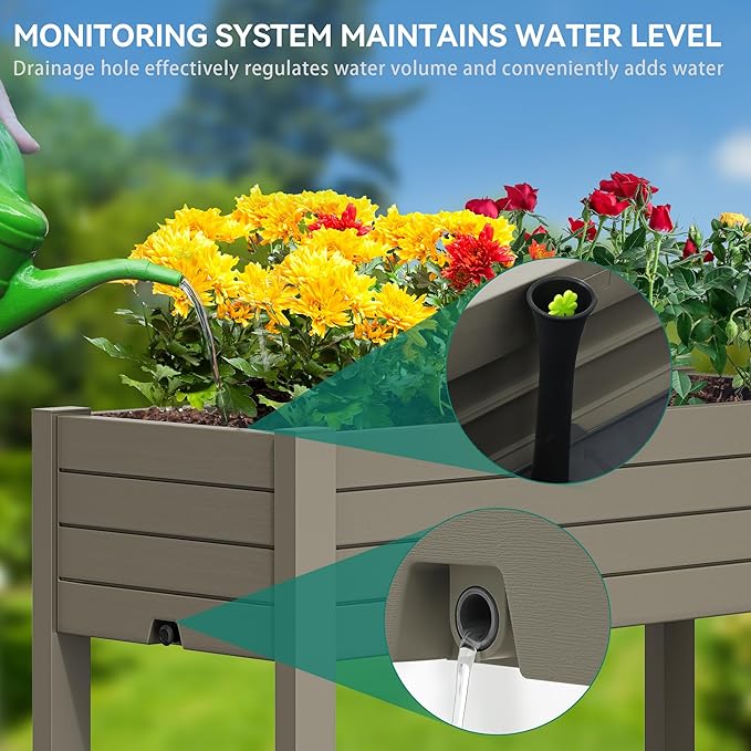 - Sturdy Materials: Built to last, this elevated garden planter is crafted from thickened resin; It is weather-resistant and withstands cracking and fading, offering a smooth finish and an attractive appearance over seasons