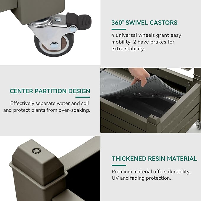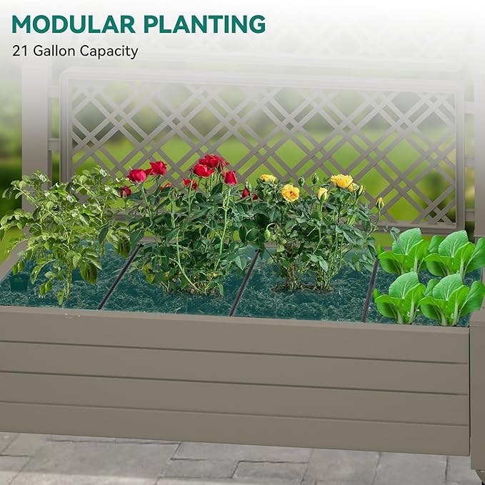- Effortless Gardening Mobility: This planter trellis box comes with four swivel casters, two with brakes for added stability and mobility; The three rubber strips divide the planter into four grids for diversified plant cultivation