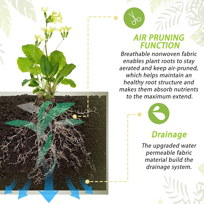- UPDATED DRAINAGE SYSTEM - Different from other brands, Linksandt raised garden bed is made of 400g non-woven fabric, which means that the grow bags are more sturdy while maintaining water permeability. So there will be no excess water left at the bottom, allowing the roots to breathe, so that the plants can grow healthier and more vigorously.