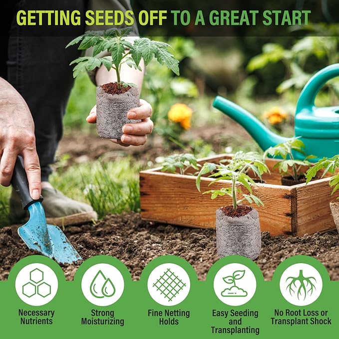 - Premium Material: Our seed starter pods are made from coconut coir and are compressed into compact and lightweight discs, turn fluffy and efficient seed growing space after adding water; The net is biodegradable and protects fragile roots, providing a sustainable and natural growing space, roots can grow through the thin fleece of coconut fiber soil