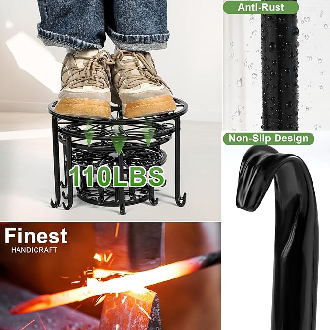 - [𝐑𝐮𝐬𝐭 𝐏𝐫𝐞𝐯𝐞𝐧𝐭𝐢𝐨𝐧]:This metal plant stand is perfect for indoor outdoor plant. Black iron outdoor plant stand is of excellent quality and is carefully crafted using high-quality materials. Its surface is coated with special baking paint can prevent corrosion and rust, thus extending its service life and maintaining its original quality and appearance even after prolonged exposure to moisture.