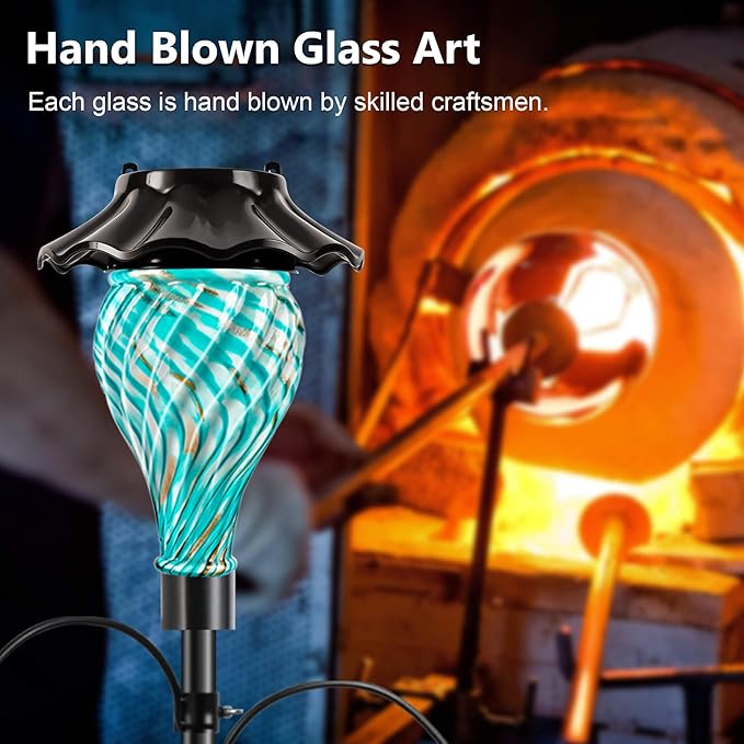 - EXQUISITE HAND BLOWN GLASS TOP: The spirally crafted hand-blown glass top combines aesthetics and functionality to create a unique, soft, tranquil atmosphere. The refreshing color adds to the ambiance and enhances your yard's appeal