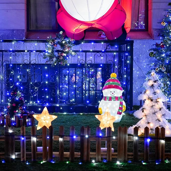- Waterproof and Reliable: Designed with an IP44 waterproof rating, our white and blue Christmas string lights can withstand rain showers (plug must be protected). Whether it's indoor or outdoor decoration, such as Christmas trees, patios, concerts, or hallways, these lights are the perfect choice. Ideal for Christmas, weddings, parties, or creating a cozy atmosphere in your home, bedroom, garden, or balcony.