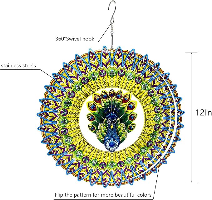 - 【Kinetic Art 3D Visual Sense】The colorful peacock wind spinner can be multi-layer flip, the unique flow of light surface design, in the breeze under the 360 deg rotation, especially in the sunshine, this bright and charming landscape, is so natural elegance and brilliant colors