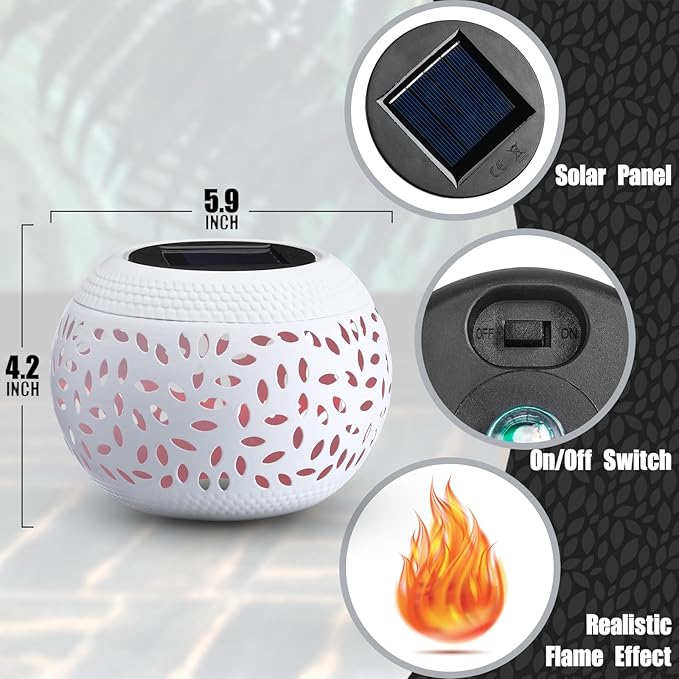 - Romantic Atmosphere Creator: package includes 2 flickering solar lights outdoor, doubling the aesthetic delight; The lights with their warm igniting flame lights and colorful spectacle master setting the most captivating mood; Its gentle illumination transforms everyday settings into romantic, making every moment special