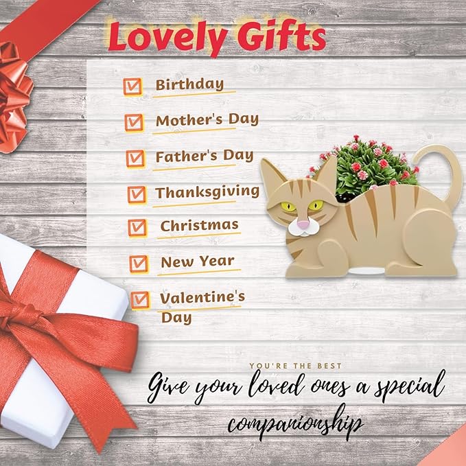 Yellow Cat Planter Plant Pots,Cute Garden Cat Flower Planter,Cat Planters Birthday Gifts for Women,Office,Indoor/Outdoor Decor(12.5 * 5.6 * 7.8in)