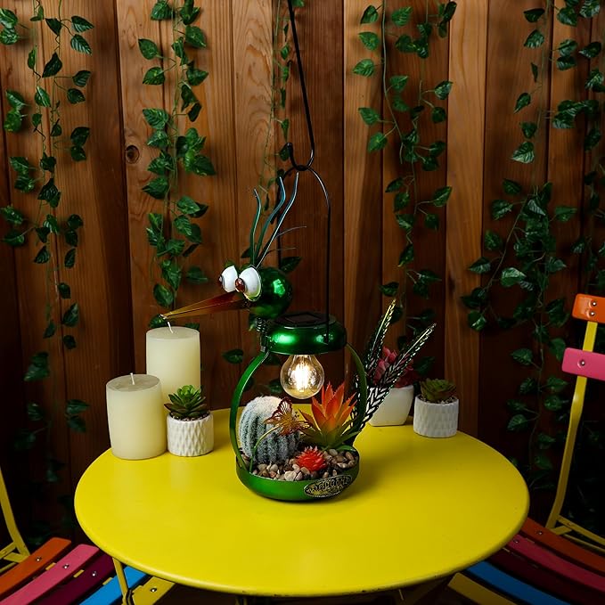 - SOLAR POWERED GARDEN LIGHT: Bring colorful whimsy to your outdoor space with this illuminated statue that charges by day and illuminates by night, making it an energy-efficient option