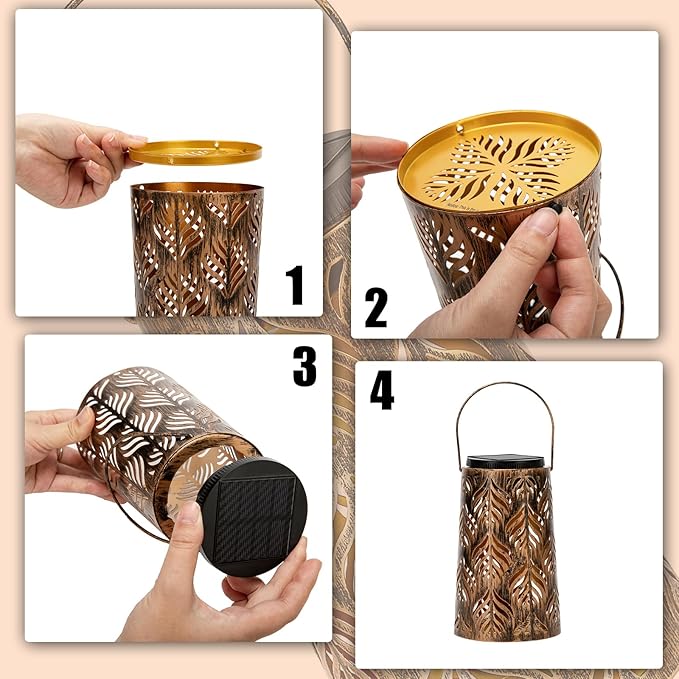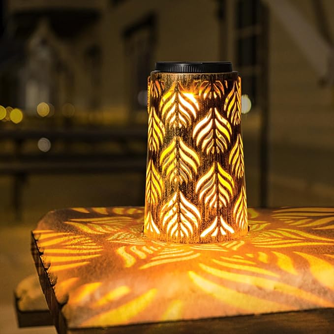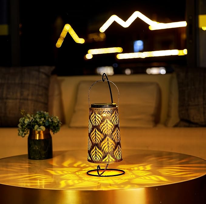 - 【Gardening Arrangement Hostess Gift】The Solar lanterns with unique leaf hollow patterns, can be used as table lanterns to created a romantic atmosphere. Our Bohemian style lantern comes with clips, You can hang it on a tree or placed on the tabletop, terrace, balcony and patio on the ground, and an exquisite gifts for women,festivals, Christmas, wedding, party and birthday.