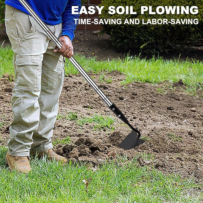 - Multifunctional Triangular Hoe : Sturdy and sharp triangular long-handled furrow hoe is suitable for various gardening tasks, providing you with a multi-purpose and convenient use experience. The gardening hand tools hoe can be used for weeding, ditching, ridging, loosening soil, planting, transplanting plants, cleaning flower beds and other occasions