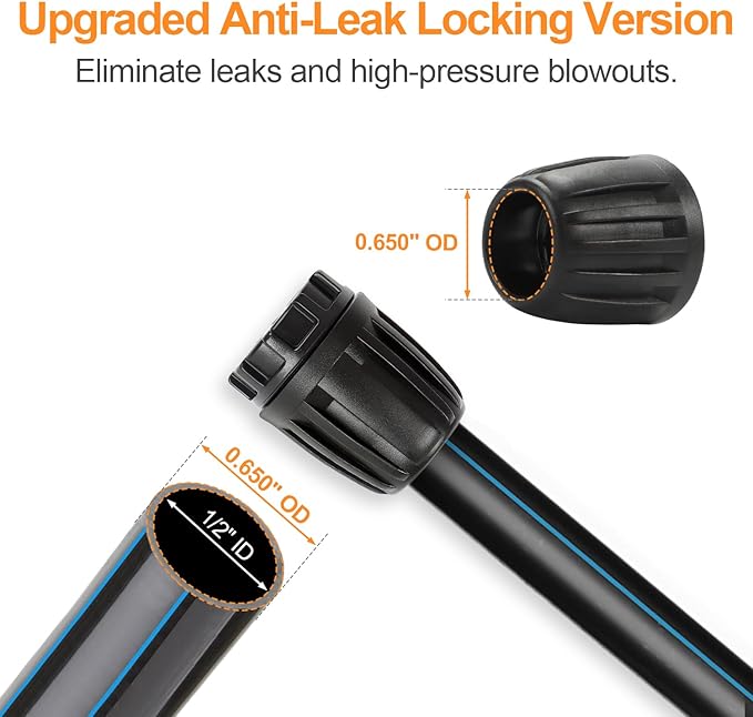 - Easy Installation & Leak Proof: Featured with sharp-barb design and twisting lock nut for super tight connection. Anti-Leak locking system ensure the pipe connect tightly to the fitting to eliminate leaks and high-pressure blowouts. Tapered ends make this 1/2" barbed connectors easier to handle and install.
