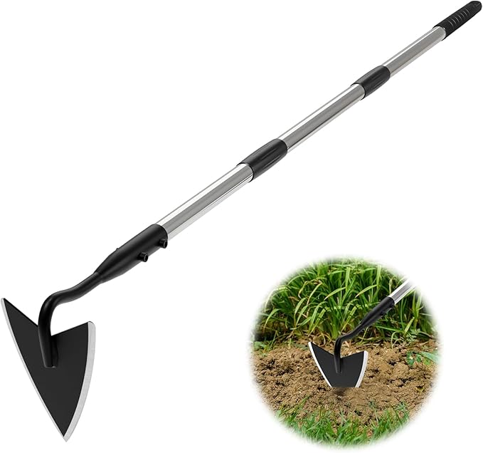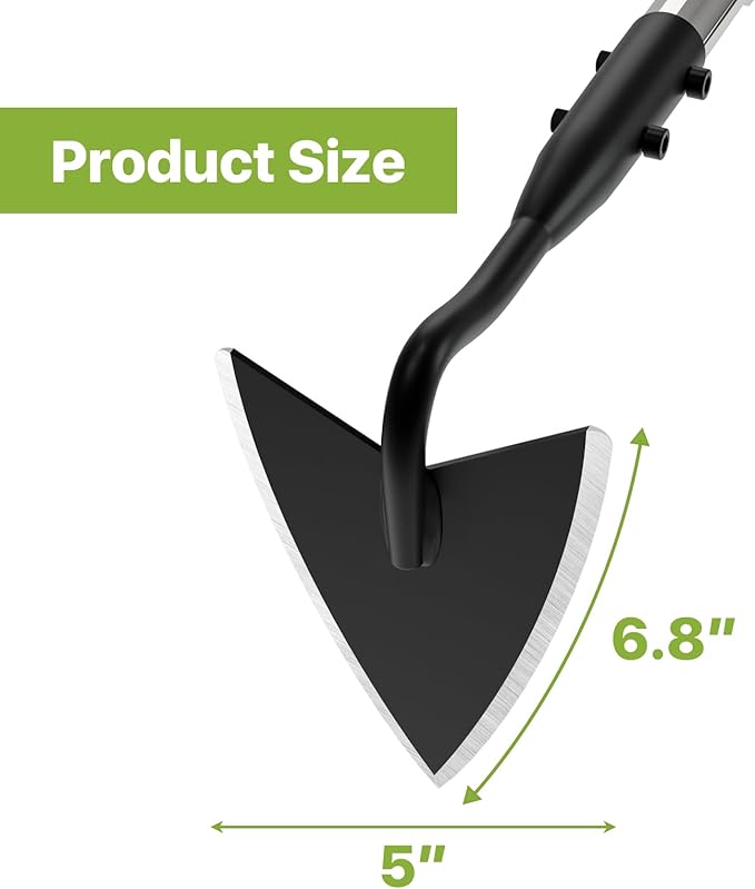 - Sturdy & Sharp: Our garden hoe is equipped with a forged steel head that has a sharp blade and a stainless steel handle, making it robust enough to remove weeds or handle other gardening tasks without bending or breaking. With a total length of 66 inches, this standing weeder will save your back muscles from constantly bending to pull weeds.