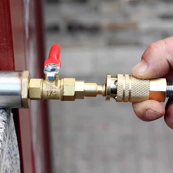 - EASY TO USE: our quick adapter fitting is easy for you to operate even ,firstly, screw the water pipe to the female thread side and connect the quick plug to the quick coupling inside the air compressor line, then turn on the air compressor and rotate around the ball stem to open or close and adjust the air flow rate to blow dry water from the water pipe.