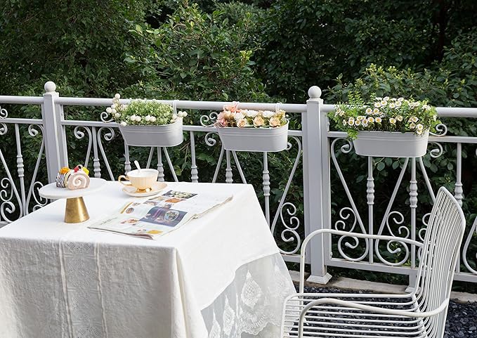 - Balcony Rail Planter: Rectangular planter was designed to maximize inside growing space allowing dirt and roots to grow strong and deep.This special design can be hung on the balcony, window, garden,railing, anywhere in the room,also can be used as desktop.