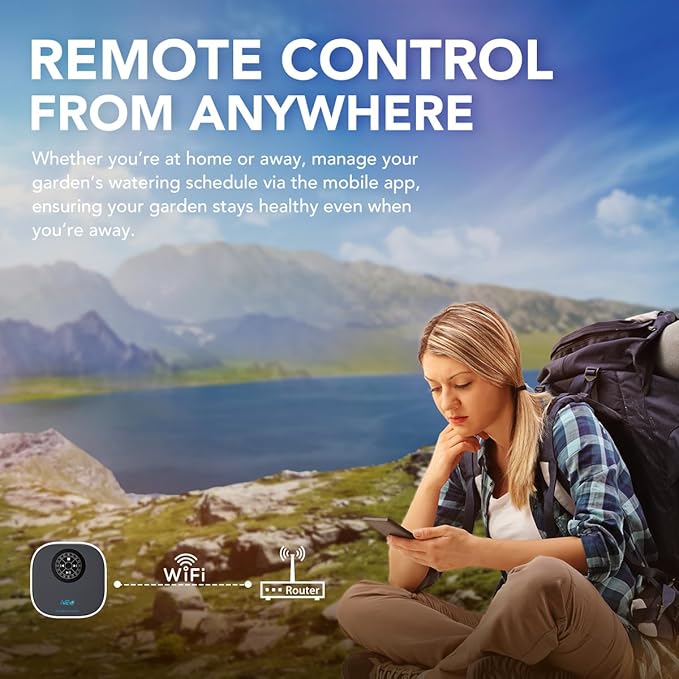 - Watering Garden When Not Home: No hub required; Support 2.4G & 5G network & Bluetooth 5.0 connection. You can choose to connect via WiFi or Bluetooth, enabling remote control of your irrigation system anytime, anywhere;