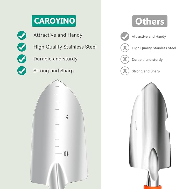 - 🌼【Premium Product Quality】: This stainless steel garden tools is made from high-strength carbon steel with ergonomic handle design, which not only has a comfortable hand feel, but also ensures the strength of the tool is durable and rust-proof.