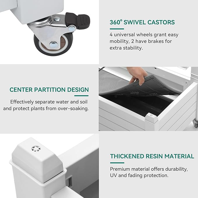 - Innovative Water Level Monitoring: Our planter box with trellis features a central divider that effectively separates soil and monitors water levels via a float system; Side drainage holes ensure optimal moisture control, ideal for plant growth