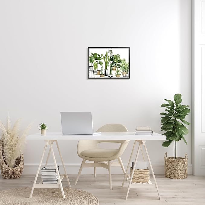 Stupell Industries Boho Plant Scene with Cacti and Succulents in Geometric Pots Watercolor Framed Giclee Art Design By Artist Grace Popp (Pack of 2)