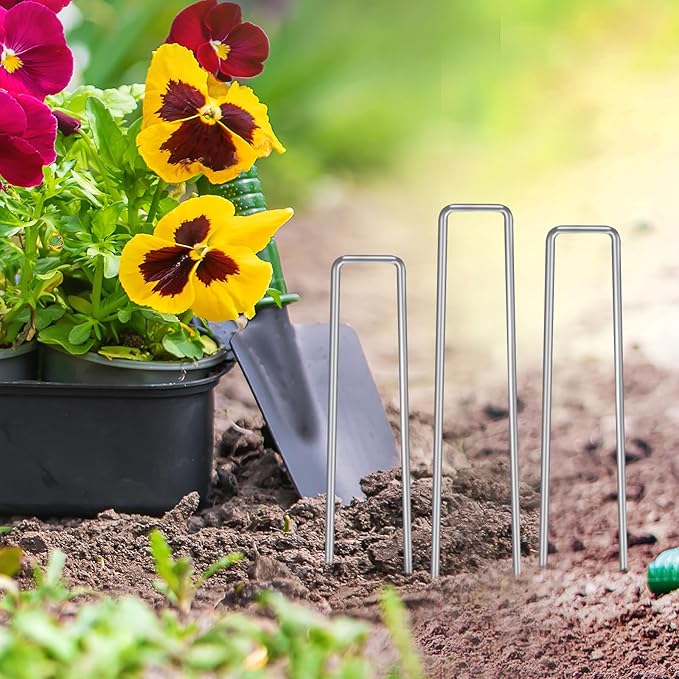 - 【Size】 Our landscape fabric staples are 6 inches long, 1 inch wide, 11 gauge (wire diameter 3mm). The size is perfect for your outdoor landscapes, patio and home projects. The gauge allows our stakes to be stronger and more Sturdy.