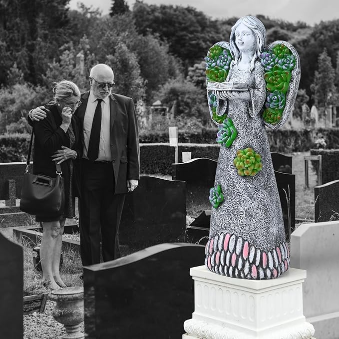 - 💎High-Quality Materials: Every parts of the garden angel is made of long-lasting resin and able to withstand,90cm crash-proof tested. Don’t worry about breaking when shipping. All resins, paints, and packaging used have been tested to conform with current U.S safety regulations. Pack Measures: 4.5"L x 3.3"W x 10.24"H.