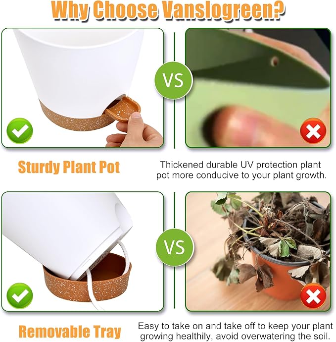 - Self Watering Planters Design: Our plant pots indoor feature a unique self-watering system that keeps your plants hydrated, ensuring their health and vibrancy. Water will be transferred from the tray reservoir to your plants soil through the absorbent cotton rope. Your plants can 7-10 days without watering.