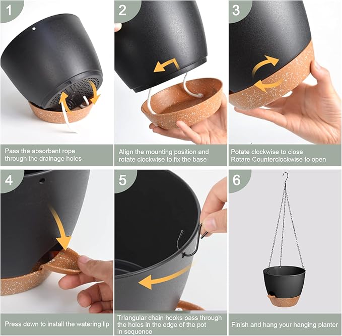 - Self Watering Planters Unique Style Design - The appearance and structural design of the self watering hanging planters for indoor plants are conducive to plant growth, and are suitable for matching various hanging plants. Such as ivy, herbs, ferns, philodendrons, succulents, flowers or other plants. Please Note: Plants NOT included.