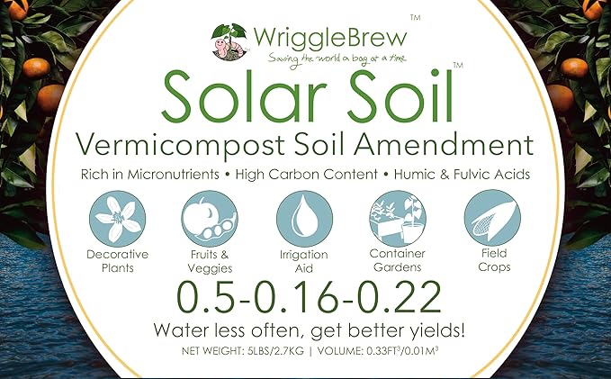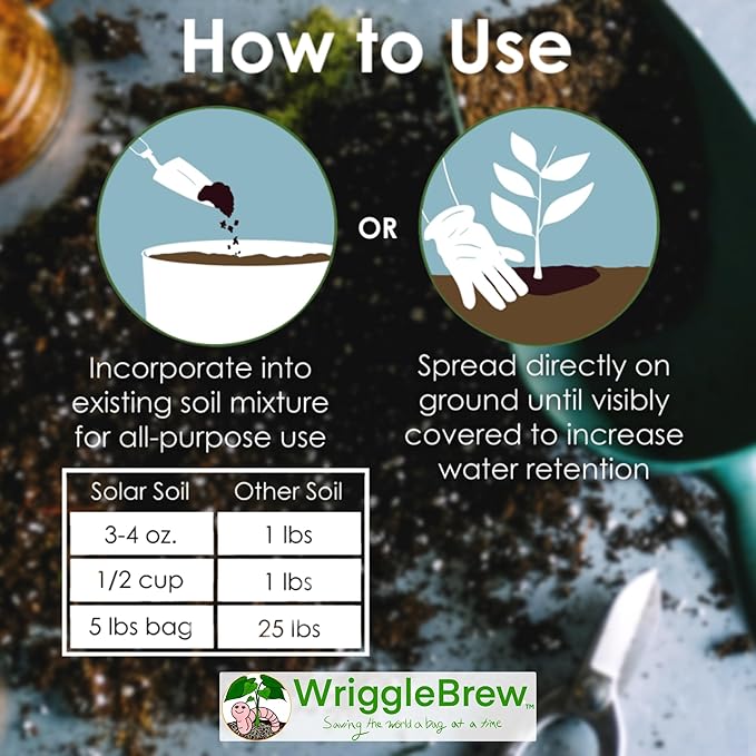 - EFFORTLESS GARDENING: Solar Soil's carefully balanced organic worm compost and mineral composition reduces the need for frequent watering and promotes healthy plants when mixed into potting soil or spread on top of garden soil.