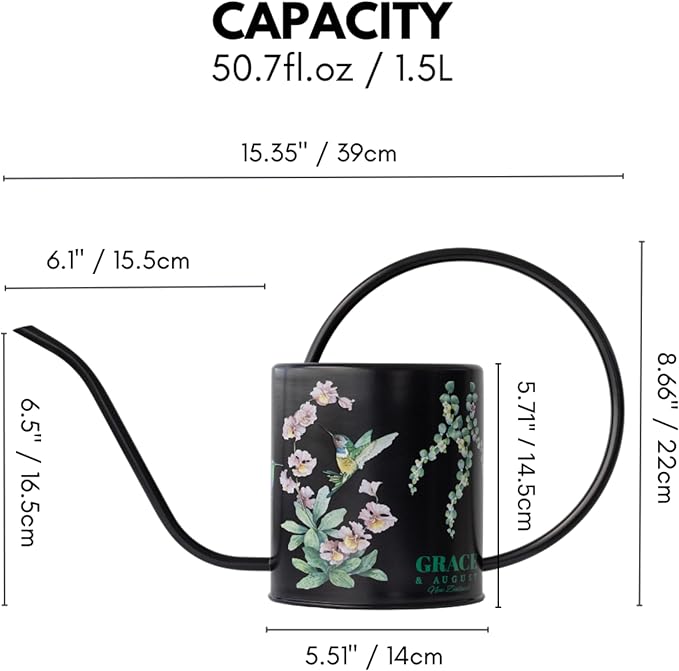 - Embrace Nature's Beauty - Our indoor watering can, with a 1.5L capacity and a bonus 200ml mist bottle, offers convenience, precision, and durability. Choose one of three colors in the Hummingbird pattern—sage green, light blue, or black—to enhance your gardening experience. Say goodbye to mess and hassle, and nurture your plants effortlessly.
