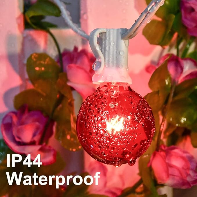 - Independence day decorations lights: 25 feet G40 outdoor globe string lights with 27 red white and blue incandescent bulbs(2 spare bulbs), E12 candelabra socket base, 5 Watt per bulbs,120 Volt, G40 red white blue string lights UL certified for indoor and outdoor use.