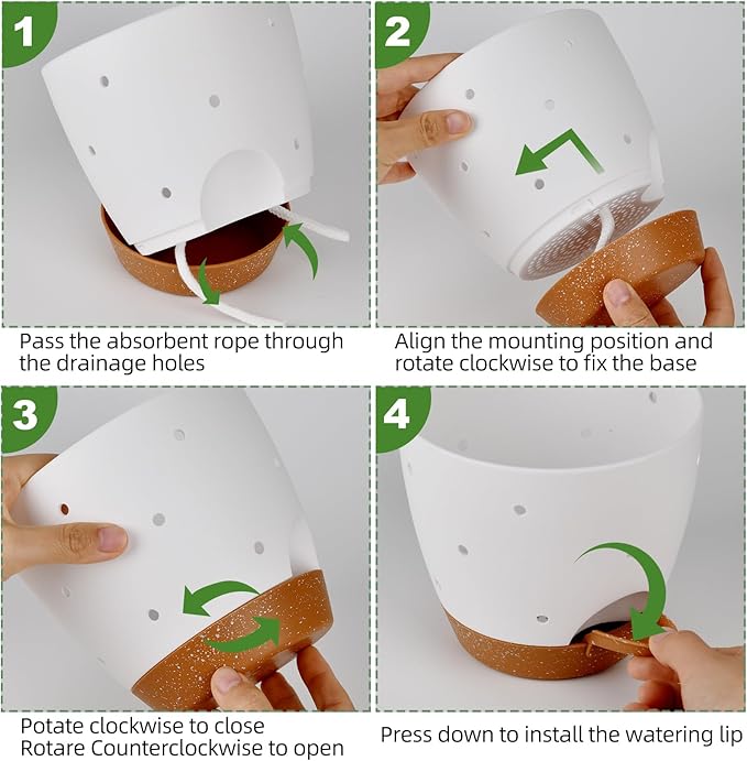 - Removable Tray - The plastic orchid pots come with a detachable tray that can be installed clockwise and removed counterclockwise. Each self watering plant pots includes a watering lip for easy watering and a clear view of the water level.
