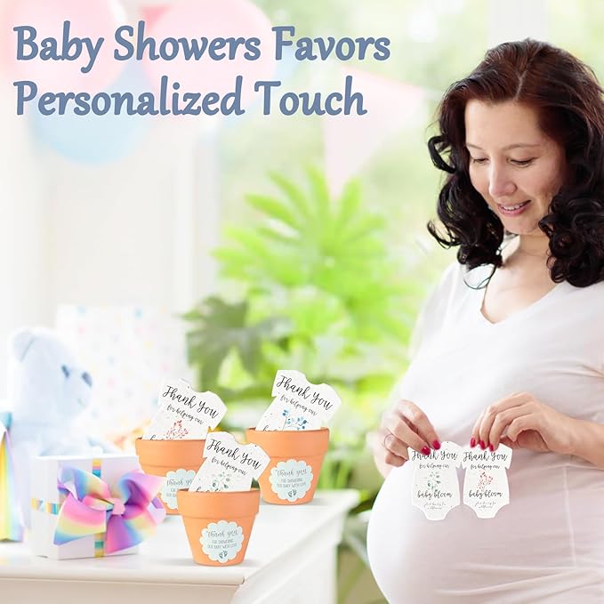 - Set of 6: Includes 6 green onesie seed paper, 6-mini orange terracotta pots with stickers, perfect for weddings, baby showers, and life events.