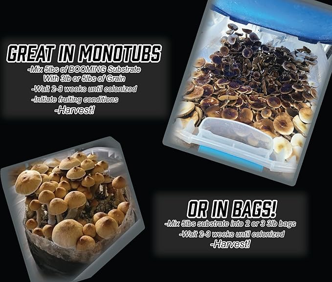 - 【 Simple Substrate Perfected】Our BOOMING Substrate is a mix of coconut coir, vermiculite, and gypsum, fortified with Azomite to provide exactly what your mushrooms need to grow BOOMING flushes!