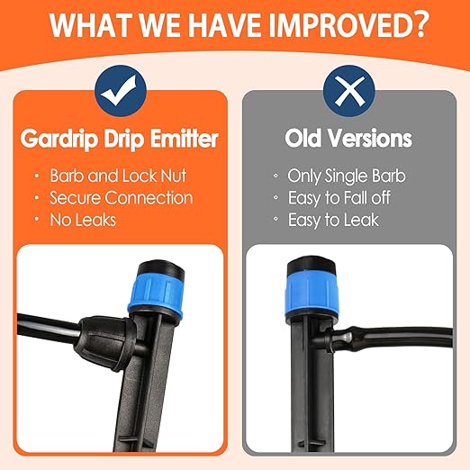 - UV-STABILIZED MATERIAL FOR LONG LIFE: Made of high quality & UV resistant plastic material,Gardrip drip irrigation emitters assure long life in the landscape. And the dripper cap are detachable and very easy to clean. Don't worry about clogging. These irrigation sprayers mounted on 5 in. stake can be easily inserted to the soil and stays fixed in loose soil.