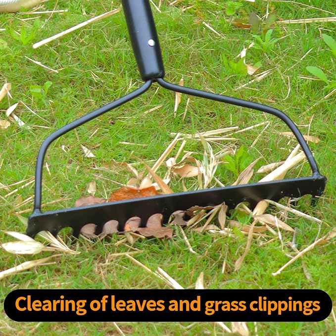 - Special Handle: The thick fiberglass handle is stronger and less likely to break and bend during prolonged or heavy use, the handle comes with 2 non-slip grips that provide a comfortable and firm grip when gardening with a lawn rake.