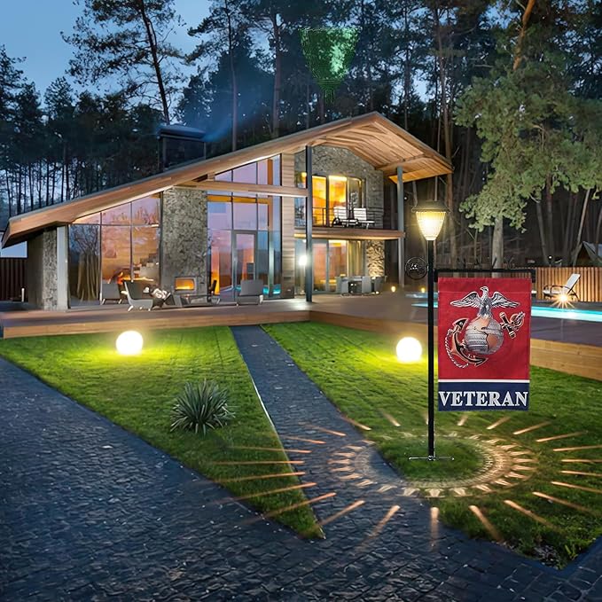 - Unique Design Garden Flag Pole: Garden flag stand holde with American Flag and Veterans decoration, Add a unique style and luster to your yard.