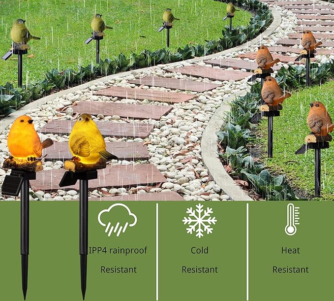 - Premium Resin Material: Bird garden stakes are crafted from high-quality resin material. They automatically light up at night, adding a cozy glow to your outdoor spaces.