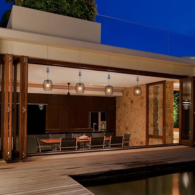 - 【Decorative Metal Lantern】This Unique hanging outdoor lantern is made of high-quality metal, it contains a retro edison bulb. Its charming openwork pattern and subtle glow illuminate your patio in a special way, adding more nature to your garden.