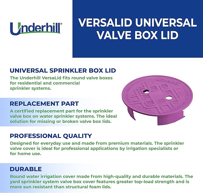 - UNIVERSAL SPRINKLER BOX LID – The Underhill VersaLid fits round valve boxes for residential and commercial sprinkler systems.