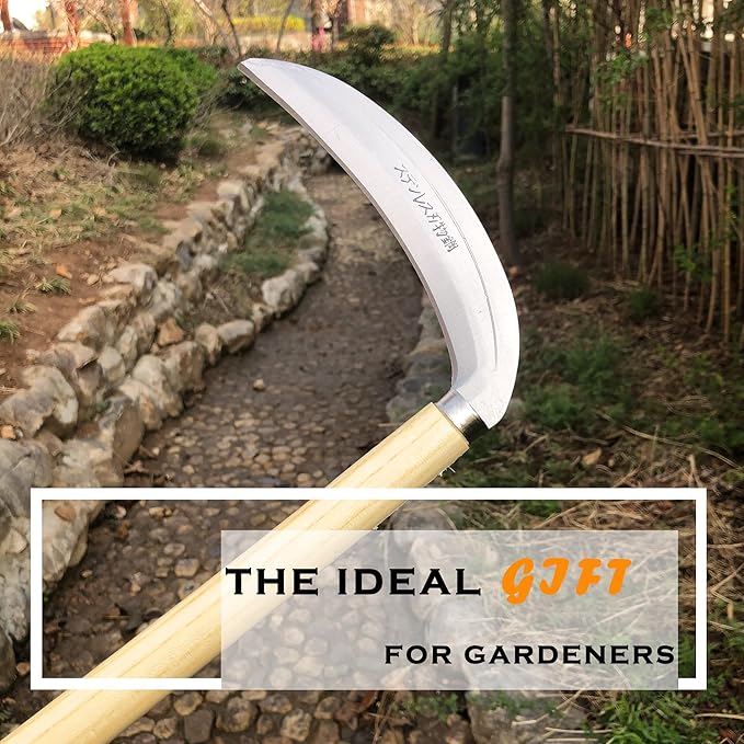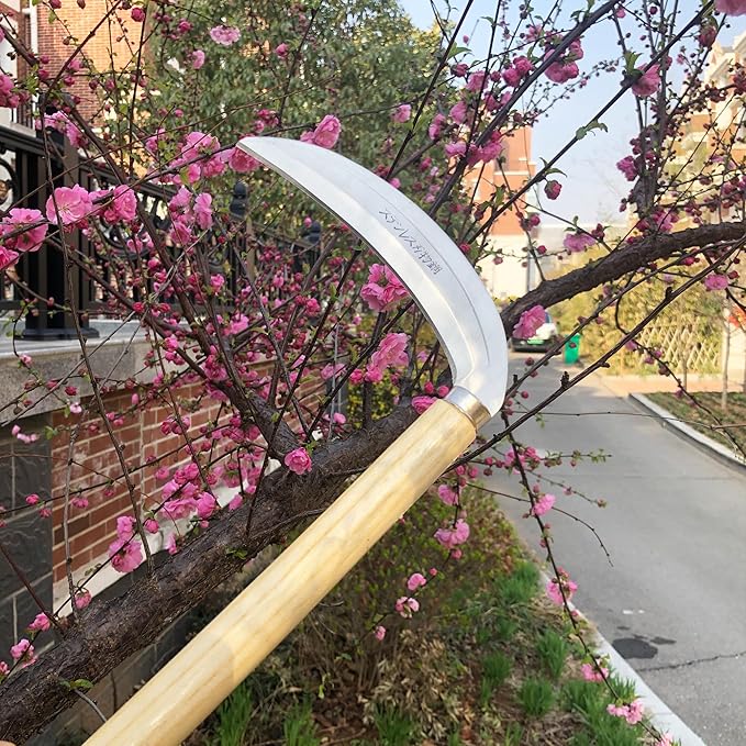SHANFEEK Grass Sickle Japanese Weeding Hoe Garden Hand Tool Weeding Tools for Garden High-Strength Steel with Solid Wood Handle (Beige)