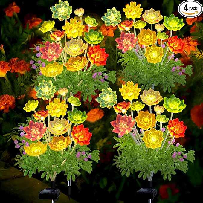 - Get Compliments from Your Neighbours-Let this cute succulent lights perfectly blends into your garden, yard, lawn, pathway, flower beds.Makes your house different from your neighbors'.Imagine beautiful succulent blooming in your yard, in your path, impress your neighbors and friends at first sight
