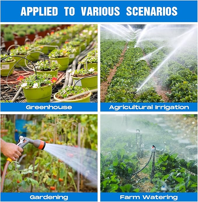 - Wide Applications: the 1/2 inch drip irrigation fittings that suitable for many 1/2 inch blank tubing, drip lines, you can use them for garden, greenhouse, flower bed, patio, lawn drip irrigation and agricultural watering applications, saving your time and making your drip irrigation system efficient