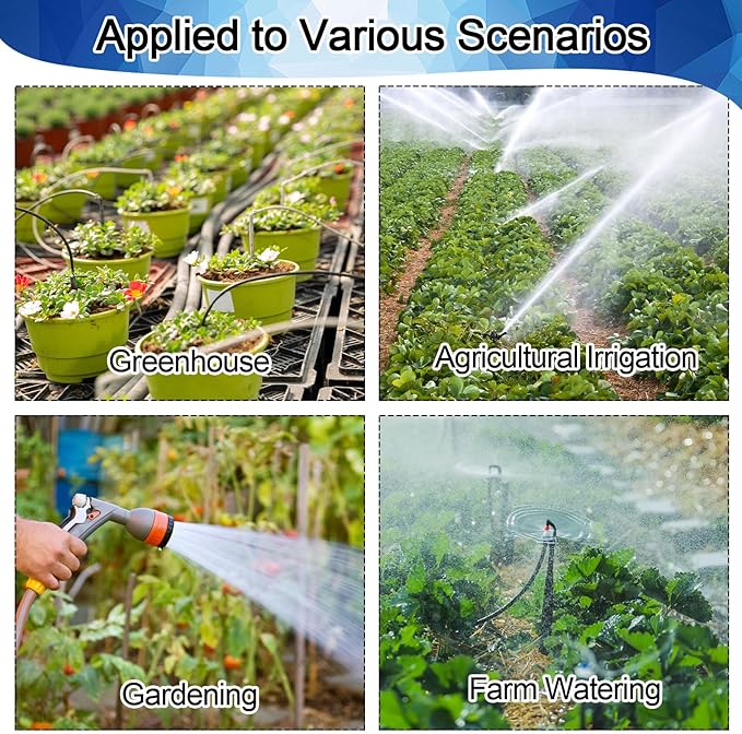 - Wide Applications: the 1/2 inch drip irrigation fittings that suitable for many 1/2 inch blank tubing, drip lines, you can use them for garden, greenhouse, flower bed, patio, lawn drip irrigation and agricultural watering applications, saving your time and making your drip irrigation system efficient