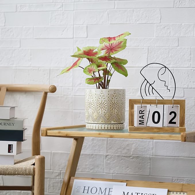 - Size & Package : 8 Inches + 6 Inched plant pot. Package: contains 2 ceramic flower pots, 2 ceramic saucers and 2 mesh pads(NOT INCLUDE PLANTS)