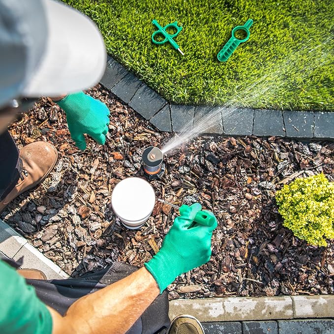- 【Comprehensive Sprinkler Tool Set】includes rotor adjustment tool, compatible with Rain Bird 5000 sprinkler heads, sprinkler adjustment wrench, compatible with Hunter PGP sprinkler heads and sprinkler rotor adjustment tool, compatible with Hunter MP sprinkler heads; Make it easy to pull up sprinkler rotor stem and provides a more precise distance and arc of lawn sprinkler system adjustment than using a flat screwdriver