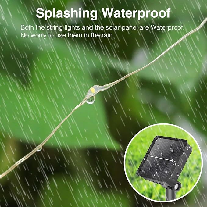 - Waterproof Twinkle Lights Solar: Solar power string lights can withstand all kinds of weather and are not afraid of rain, snow, fog, and frost, suitable for outdoor use. Solar tree lights can be used in Christmas, party, wedding, birthday, anniversary; and can also be used in garden, backyard, patio, balcony, bushes, flower bed